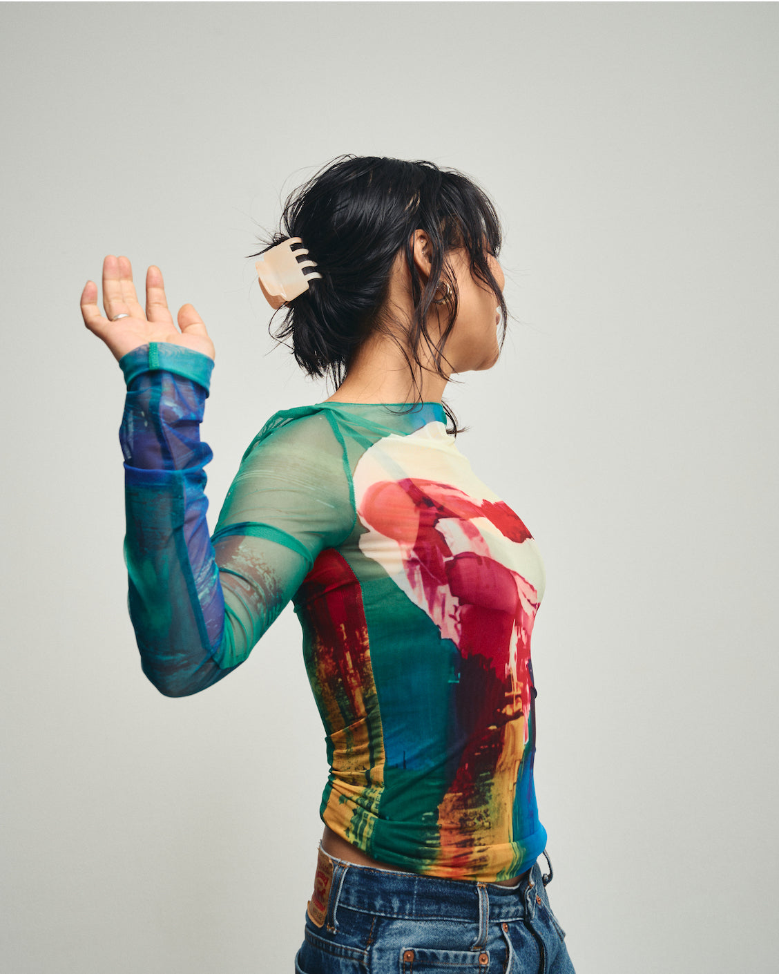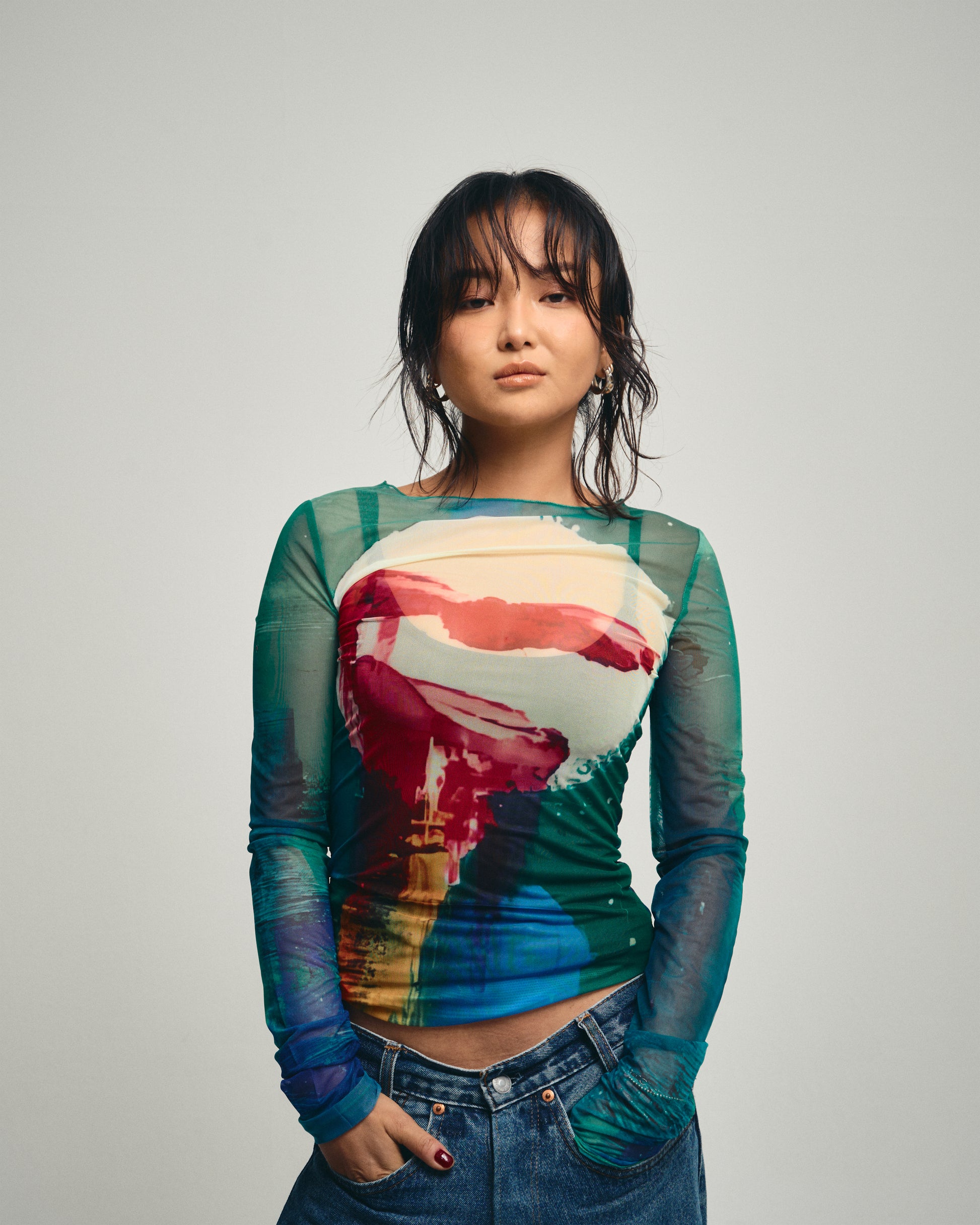 タイトな身幅に少し長めの袖丈が特徴のアイテムです。伸縮性に大変優れたポリエステルを使用しております。着用を増すごとにフィット感は増していきます。まさに貴方のセカンドスキン(第二の肌)となることを願います。
